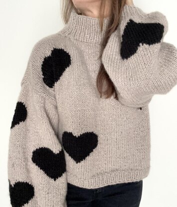 This sweater is super soft, sweet, and has all the right feels for this time of year! It is knit with a bulky weight yarn and a US #10.5 needle. (My favorite!!!) It has a boxy shape that is flattering and drapes well.