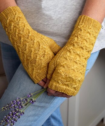 Textured accents and captivating cables may turn these fingerless mitts into a sweet obsession.
