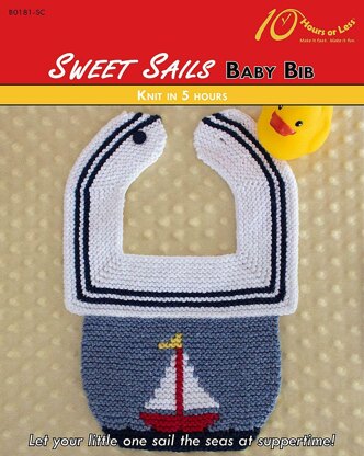 Let your little one sail the seas at suppertime! Worked in garter intarsia, this cheerful and charming bib sports a bold and bright sailboat surrounded by heather blue skies. Designed with a classic nautical neckline, it’s an authentic accessory for your swashbuckling sailor to be.