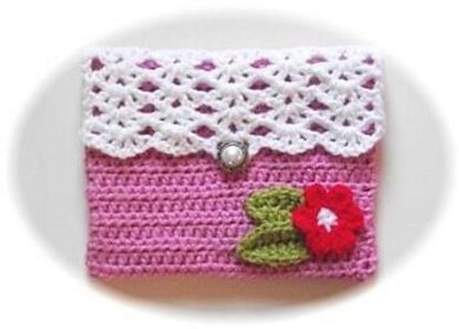 This sweet little purse has a pretty lace flap and flower embellishment. Add a pretty button, and you're all set! Use as a purse, or even an electronics case. Fits my KindleFire perfectly. Instructions for lining are included.