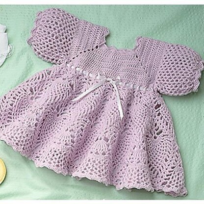 Leisure Arts Dainty Dresses Sweet Sugarplum Crochet ePattern- Treat your favorite toddler with a handmade dress that's just as sweet as they are. Sweet Sugarplum design is worked up in purple and features puff sleeves, a flowy pattern lace skirt and woven ribbon accents. Project calls for size 1 baby fingering weight yarn and crochet hooks in US sizes D-3 and E-4; 3 and 3.5 millimeter hooks. Includes step-by-step instruction, general crochet instructions and stitch guides. Finished design fits most toddlers between 12 and 18 months. Originally published in Leisure Arts Leaflet 2071, Dainty Dresses. 4 pages, PDF download.