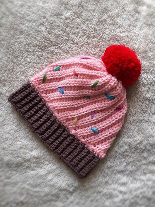 Cute beanie pattern perfect for babies, kids as well as adult. The beanie top is worked up flat in rows, joined with sl sts and then brim is added.