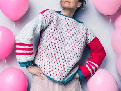 Sweetheart Sweater Pattern. This crochet pullover is worked in four pieces, back, front and two sleeves. The front and the back are joined at the shoulders and the sleeves sewn on. The body sides and sleeve seam is then joined on each side. Finally, a braided edging is worked around the hem and cuffs. It requires minimum shaping. It's an intermediate level pattern. You can crochet it in any size or color combination. You can also easily adjust the pattern to your own preferences. You can wear the sweater front or back depending on the mood and experiment with the colour. Feel free to use the yarn and matching crochet hook of your choice to make the sweater. The result will be bigger or smaller keeping the same proportion.