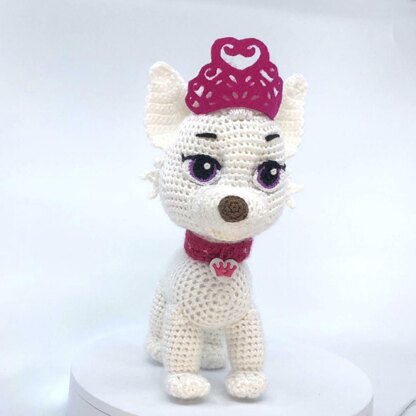 Materials Caron simply Soft – white color, less than 1 skein. (weight#4, medium) Magenta and pink color for collar (weight#4, medium) White of of light grey color to make mouth (weight#4, medium) Cotton Perle DMC thread #3, dark brown color to make nose. For eyes: Cotton Perle DMC thread #3, hook 1.3mm Black Purple or similar White