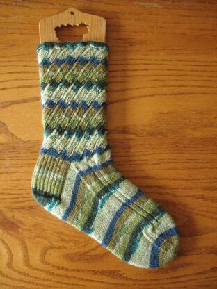 Swirl Socks are perfectly paired when using self striping sock yarn. The pattern is very easy, knit from cuff to toe with a little ribbing on the foot to keep it snug and well fitting. A simple bias pattern creates the swirl effect on the leg of the sock.