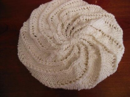 An easy, quick slouch hat, that features swirling decrease and YO design. Just in time for Christmas gift making! Uses 125 yards of worsted weight yarn. Starts out using size 7 circular needle and 72 sts in K1, P1 ribbing for 10 rows, then increases up to 96 sts and worked even on a size 10 needle for 34 rows. If you love slouch hats, you'll want to make this one is lots of colors.