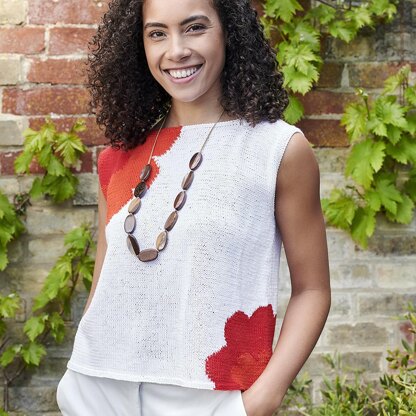 This cotton shell top is an ideal garment for high summer, with its cool, lightweight fabric. It has been designed to have a loose, relaxed fit, and Jennie Atkinson has decorated her design with vibrant poppy-like intarsia motifs. The garment is knitted in a smooth cotton 4ply yarn from Patons, which comes in a lovely choice of colours so you can adapt the intarsia pattern to reflect your favourite flower. (note: this garment is knitted in 2 pieces, with side seams. It's not possible to work the intarsia flowers in the round).