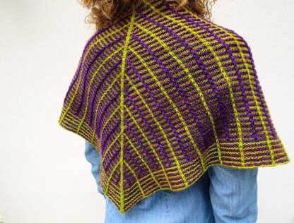 Originally inspired by the vibrant purple and green hues of my favorite flower, the double French lilac, this two-color shawl will work perfectly with your favorite color combination, too! Or try Syringa in a single color for a subtly elegant, textured statement. This triangular shawl is worked in one piece from the top down and features columns of slipped stitches and alternating stripes of stockinette and garter stitch. Fingering weight yarn is worked on a larger needle to enhance the drape of the shawl. The pattern includes two sizes for a smaller and larger shawl; the sample shown is the smaller size.