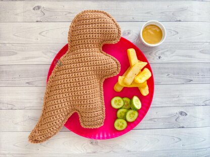 Our finished T-Rex Dino Nugget Kawaii Cuddler® is 13" x 7". Hook size, yarn choice, and crochet tension will affect each individual result.