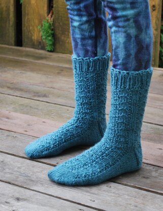 Knit from the toe-up in super bulky weight yarn with the Magic Loop, these sock are a breeze to create (but feel free to use two circular needles if you prefer). Tadasana Sock features a subtle Eye-of-Partridge heel, and misty Mountain Motif. This fully written pattern includes written instructions & helpful links to video tutorials to learn new sock-making skills.