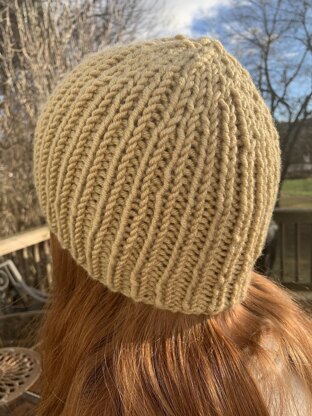 This is a pattern for a very stretchy ribbed knit hat with smooth decreases at the crown. Will easily become your everyday beanie. One size suitable for women, men, and teens. Instructions given for medium weight yarn and bulky weight yarn. Great for last minute gifts!