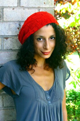 Fun and easy texture stitches produce stockinet stitch bows in this seamless slouch hat.