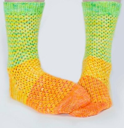 The sample was knit using one Transitional Pack from Wooly Wonka Fibers, but could be knit using any sockweight/fingering-weight yarn. You will need approximately 375-400 yards of this weight yarn to complete the socks as written, depending on which size you choose.