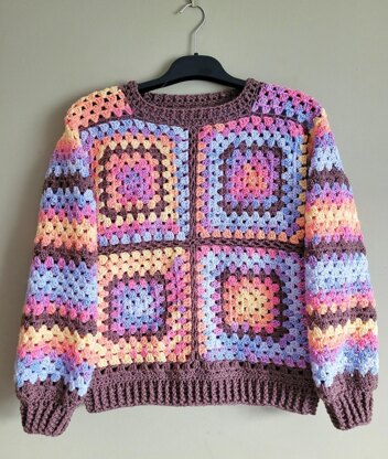Hey everyone and welcome to the Take Square Sweater! This design is made to measure, so you can grab any ply of yarn and hook from your stash! The sweater is made up from 8 classic granny squares, 4 on the front and 4 on the back. This can be a great project for using up yarn scraps! I look forward to seeing everyone’s version of the Take Square Sweater!!!