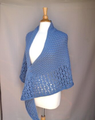 A warm and cozy shawl in a thicker yarn that lets the stitch work shine! Box stitch texture and a simple lace pair well for a lovely shawl.
