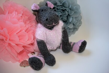 Knitting Doll pattern Tammy to download...English Version only. Tammy is a nice Hippopotamus knitted doll that you can decline in several colours! With big feet, nice stripes on the legs, and a big ball body, this doll will be loved by kids or simply adorable in a room decor. The dress is easy to remove and pull back on the doll. Buttons are in the back for a romantic look. This doll measures about 32 cm if knitted with 4mm needles and as instructions. So the kids can play a long time with it! You can insert it on a bedroom decor ! Or you can sew some fabric clothes just for fun ! Hippopotamus Doll Tammy easy to knit is a wonderful gift for kids!!! You can put it on a kid bedroom!! and it is a nice birth gift to do by yourself! Level: Advanced begginner 1 Medium This pattern is written row by row. You have lot of pictures to see how to sew you doll. Doll measures 32 cm. This doll is perfect to decline in many colours! Have fun to do it!!