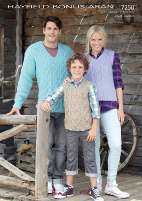 Tank Top and Sweaters in Hayfield Bonus Aran with Wool - 7250 - Downloadable PDF is a Knitting pattern by Hayfield, available as a Downloadable PDF and includes instructions in English. Super fun to make, this pattern could be your next masterpiece!