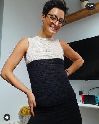 Sizes included are S, M, L, XL - bust sizes 30 - 46" There are photos included throughout the crochet pattern to help you along the way and keep it as simple as possible. You will need: - approx. 420 - 700m aran / worsted weight yarn in black, preferably cotton - approx. 300 - 450m aran / worsted weight yarn in cream, preferably cotton