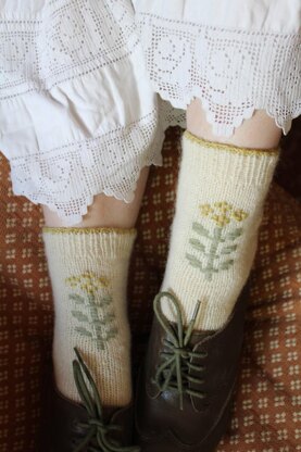 For this design I wanted to bring that cheerful gold to a cozy pair of socks with traditional Estonian techniques.