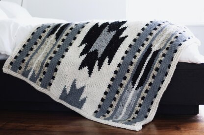 DESCRIPTION The Taos Lap Blanket was inspired by the beautiful shapes and woven fabrics in the southwest, particularly in the city of Taos, an artist’s haven in New Mexico’s high desert. This throw is the perfect size for the lap both on the couch and in the car, and makes an excellent gift for a winter baby.