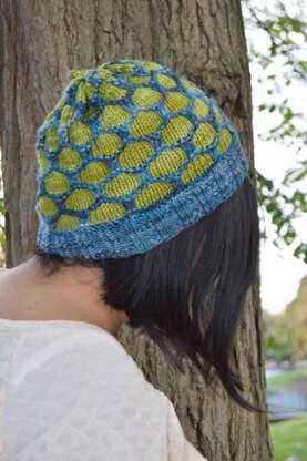 With this false colorwork you'll have a different , sexy, modern and stylish hat. It works with slipped stitches, making it easy and fast. It takes 1/2 skeins of each color (shown in Bobby blue and Lettuce).