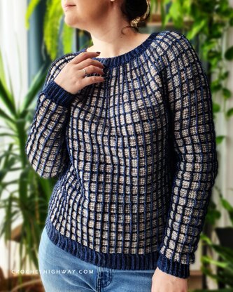 The Taurus Jumper is a unisex yoked sweater with a seamless, top-down construction. Using a combination of extended single crochet and tall stitches worked using at least two contrasting colors, it features an interesting grid-like effect that starts from the neck and continues seamlessly on the yoke, body and sleeves. Using a single color at a time, this advanced pattern walks you through each step from start to finish, providing customization ideas along the way to truly make the sweater yours.