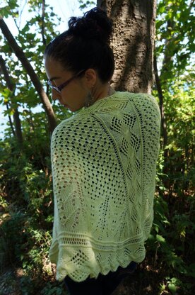 There are 3 different sections to this shawl. Chart A, Chart B (broken down into several smaller charts as the rows get longer), and Chart C. Chart A is the “ribs” of the shawl. This is a 21-stitch section that runs the depth of the shawl and breaks up the main body section. Chart B is the main body of the shawl. This is where the majority of the shaping decreases take place. There are multiple charts that comprise the B section since the rows are increasing and evolving as you go. Chart C is the border which is knit on at the end.