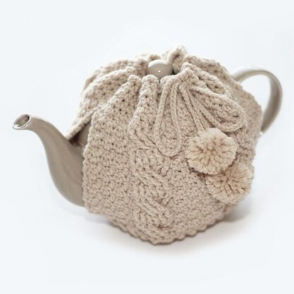 The finished tea cozy measures 20.25 cm (8”) wide and 19 cm (7½”) long and will fit a standard sized teapot. The Gordon Ramsay Maze teapot by Royal Doulton is the model for the tea cozy shown. The blue tea cozy that is pictured was made using 1 ball of Cascade 22
