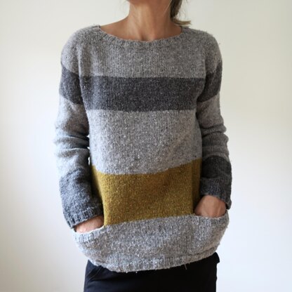 The spirit behind this design is something cozy you want to throw on top of your pyjamas for weekend breakfasts. Of course it would be also great for going to school, the grocery store, a football game, walking your dog, lounging around your home, or whatever else you love - or need - to do. It's also a nod to the current colour blocking trend, because we all want to look stylish in our hand-knits, even if we are wearing them with our pj's, right?!