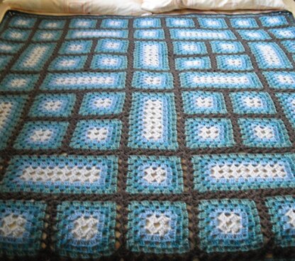 Teal dreams is a blanket in my favourite colours this season - teal, blue and brown. It is a variation on the traditional granny square, using ‘diamonds’ in the centre rather than standard granny stitches. Using this method the squares can be made any rectangular shape. I mixed the squares with rectangles of double width, but you could try any combination to make a unique blanket design. I used 5 colours of yarn, in blues and teals with a dark brown joining colour and I have written the pattern for the colours so you can see how I constructed it. You do not have to follow the colour scheme or work to the size I did. However, if you wish to adapt you will need to adjust your yarn quantities. As made pattern uses 3 balls of A, 4 of B, 5 of C, 7 of D and 7 of E to make a blanket approx 1.5m/5' square Written in English and US terms, and charted, with some photo tutorials.