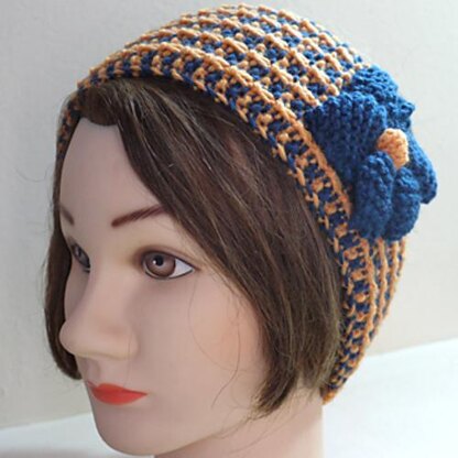 This pattern contains directions for the headband in two widths, with an optional flower for the wider headband, as well as an optional design variation for the back of the neck.