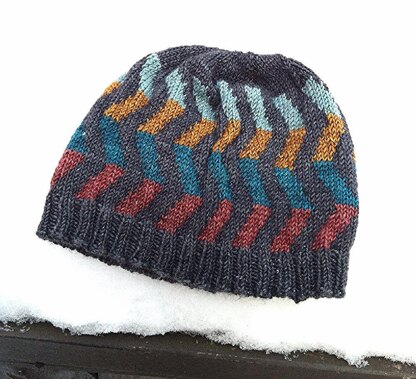 A whirly, twirly hat worked in the round with an easy stranded colorwork sequence that is offset every few rows, making bold, graphic waves. A great first stranded project, Technicolor Whirl is fun to make and fun to wear. This pattern is for intermediate knitters.