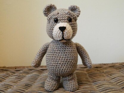 Using a 5mm hook and aran (10ply) yarn Ted stands at around 10 inches