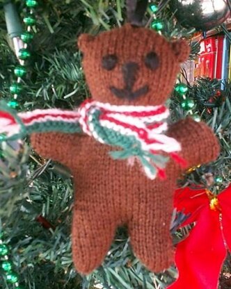 Knit a little teddy bear as a Christmas tree decoration or package tie.