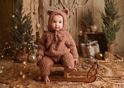 This cute little Teddy hoodie and pants is incredibly soft. Each part of the outfit is knitted flat and sewn together. It is made to fit size 12-18 month. For this pattern, I used 400 yards Sirdar Snuggly Snowflake Chunky You'll also need US Size 10 (6mm) knitting needles and an Size D (3.25mm) crochet hook for the ears and ties. Gauge-14st/20 rows/4’’