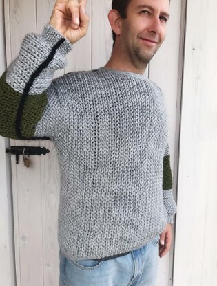 Materials for Men Sweater: * In total 900(1050,1200,1350,1500) meters / 1000(1150,1300,1500,1650) yds for the sweater of which 20 meters / 22 yds of color 2 (seams) and 120(120,150,150,150) meters / 130(130,164,164,164) yds of color 3 (here green stripe of the slevees). *Yarn is Chunky/5/bulky weight yarn. The sweater in the pictures are made with BBB filati Alpaka 70, Novita Jojo, Ruby Extra Merino Other yarn suggestions> Hayfield Chunky Tweed with wool, Drops Andes, Mondial bio soft (cotton), Sirdar Smudge, Bernat Velvet.