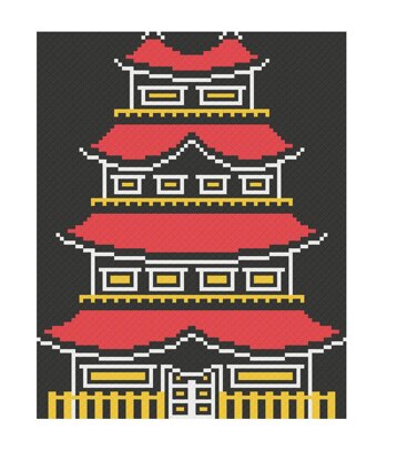 Temple at Night C2C Pattern - Large Throw Blanket PDF with Graph + Row-by-Row count