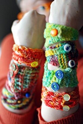 Yarn: 10 yards of worsted-ish weight for each cuff - variegated works well