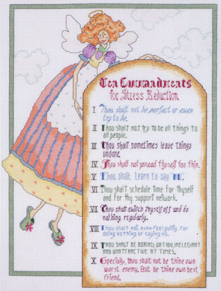 Designed by: Linda Gillum. The 10 Commandments for Stress Reduction are presented by an adorable angel.\n\n