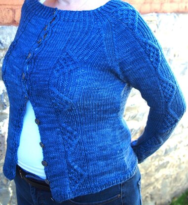 Ten Peaks is named for the Valley of the Ten Peaks, which surrounds Moraine Lake in my beloved Rocky Mountains. Ten Peaks is a bottom-up cardigan with raglan shaping. The only finishing work done is seaming the underarms and weaving in ends.