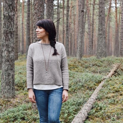 The pattern is worked bottom-up, starting with the chevron texture, then you switch to a more relaxing stockinette in the round before separating front and back. A couple of short rows are added on the neckline, and then you pick up stitches to knit the sleeves.