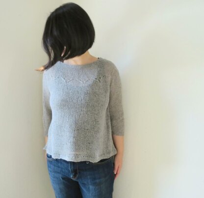 A round-yoke style pullover that can be worked with various yarn weights. It is worked top down seamlessly in round with simple cable and eyelet around the yoke.
