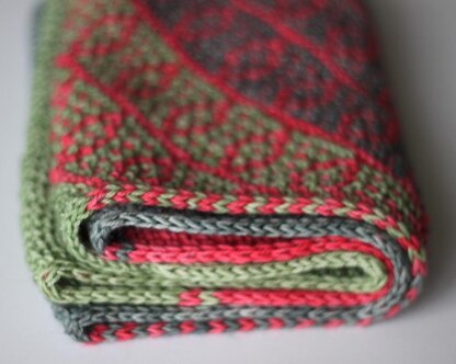 The Tesselation Game cowl provides a chance to play with colors and mosaic patterns. Featuring deceptively simple slipped-stitch colorwork (you only work one color at a time) and funky color combinations you choose yourself, this project will keep you entertained while it zips along in soothing garter stitch. Yarn ends are cleverly hidden in the i-cord edging that is worked at the same time as the body of the cowl.