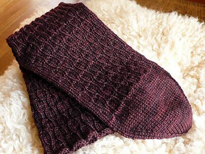 Sample is shown in Woolen Rabbit Superwash Merino Sock, colorway Burgundy Bean.