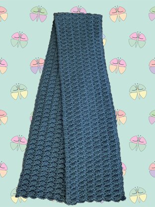 This is a crochet pattern for an easy scarf made in double knitting yarn. It is a cosy textured pattern which makes up quickly on a 5mm crochet hook. It is easy to adapt the length - just remember it will use more yarn if lengthened.