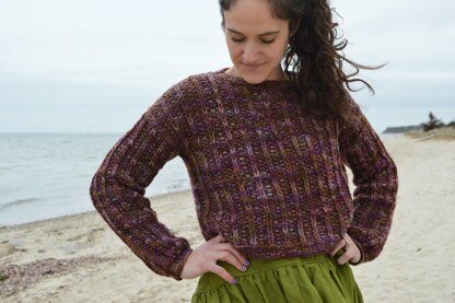 Textured Rays is a great everyday sweater, perfect for mixing and matching with your existing wardrobe in endless combinations! The design features a boxy shape and drop shoulders. The simple overall textured pattern has slipped knit stitches that stand out like rays against the background. Knit the design as is, in a fashionable slightly cropped length, or simply add a few more inches to the body for a more traditional sweater. Knit up in Briar Rose Fibers beautiful hand dyed, heavy worsted weight yarn, Abundance.