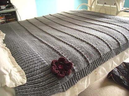 It is suitable for anyone who has mastered the basics of knitting and crochet (for the flower only) and fancies having a go at creating a large blanket in just one piece!