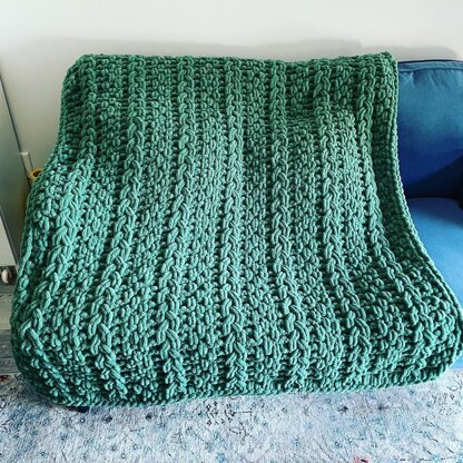 THIS IS A LOOP YARN FINGER-KNITTING PATTERN. The Textured Stripes Blanket Pattern has columns of cable braid and seed stitch to create a cozy, chunky textured blanket