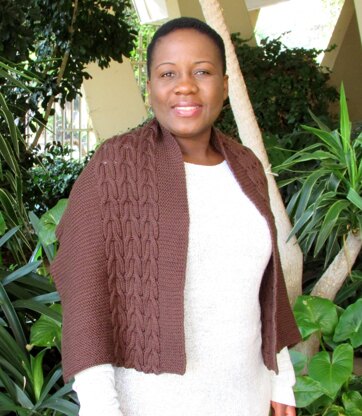 This wrap is a quick to knit project in an Aran weight yarn. The cable is simple to work and is double sided (both sides look good) so the wrap can be worn on either side. The garter stitch provides a soft, squishy finish to the wrap. The wrap can be made longer if preferred. Both written and charted instructions are provided.