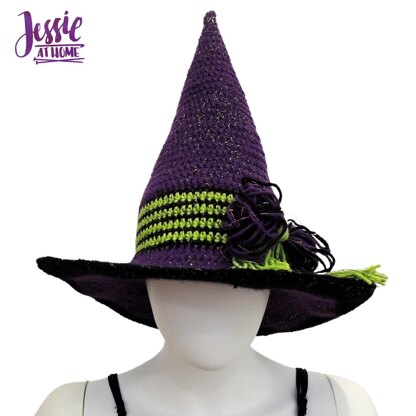 This pattern can be found for free online at jessieathome (dot) com/pattern/that-witch-crochet-witch-hat/